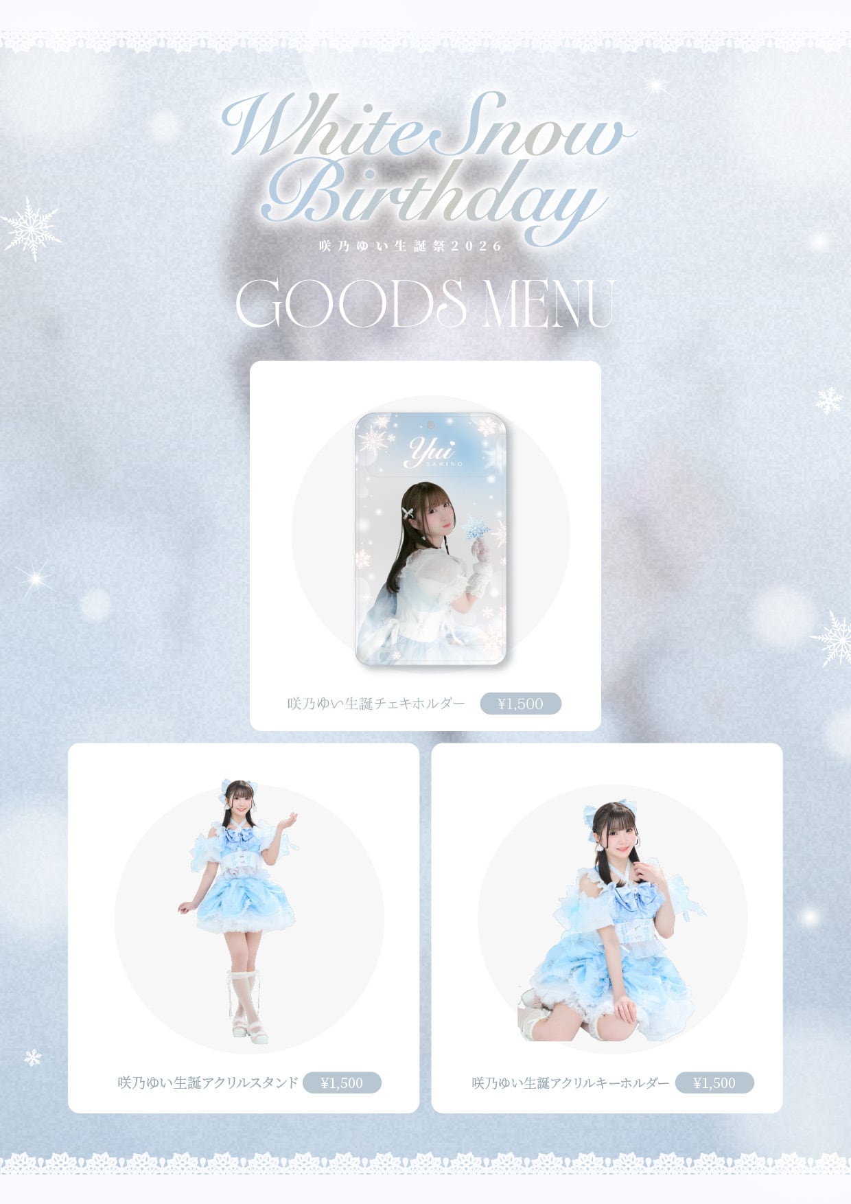 【数量限定】咲乃ゆい生誕祭2026限定グッズ『チェキホルダー・アクリルスタンド・アクリルキーホルダー』